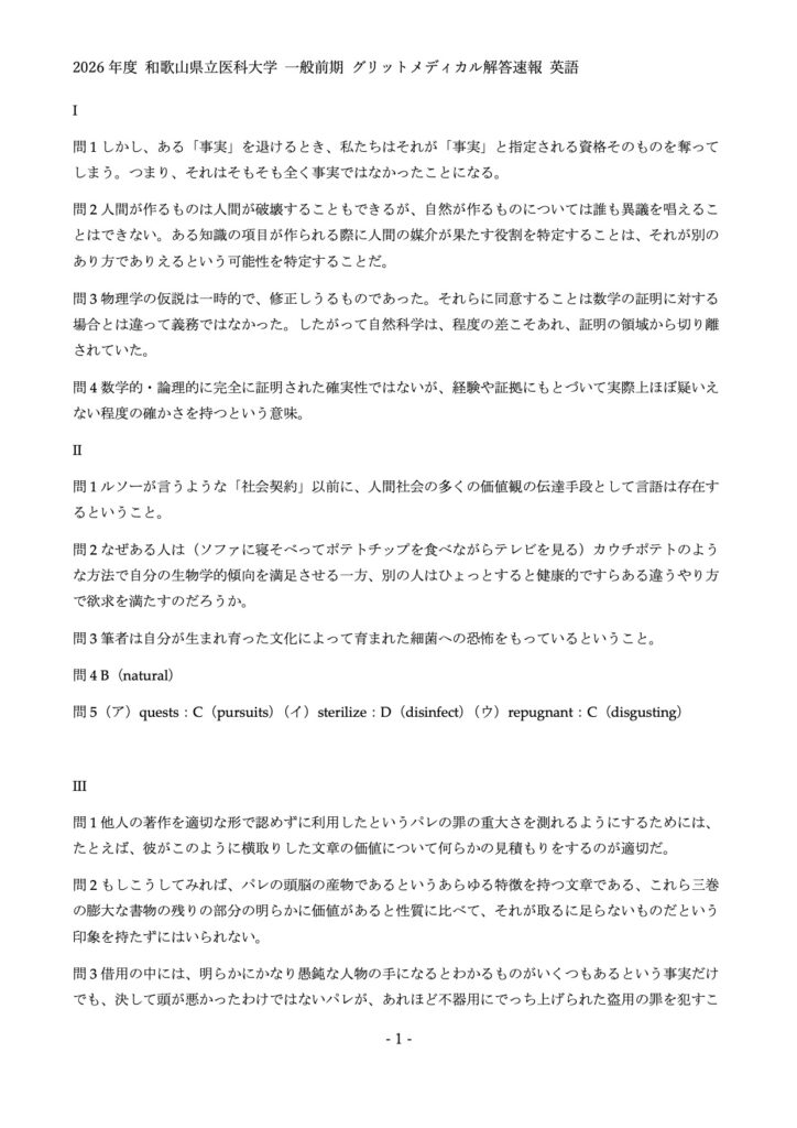 2026年度 和歌山県立医科大学 解答速報 英語 掛谷拓也 4時間前 和歌山県立医科大学付属病院 2026年度和歌山県立医科大学解答速報英語(PDF) 【2026年最新】和歌山県立医科大学 医学部の面接対策|過去問・形式・地域枠の質問を解説続きを見る 【2026年最新】和歌山県の大学病院の勢力図解説続きを見る 高野山、熊野、十津川村——僻地医療最前線の医局勢力図続きを見る